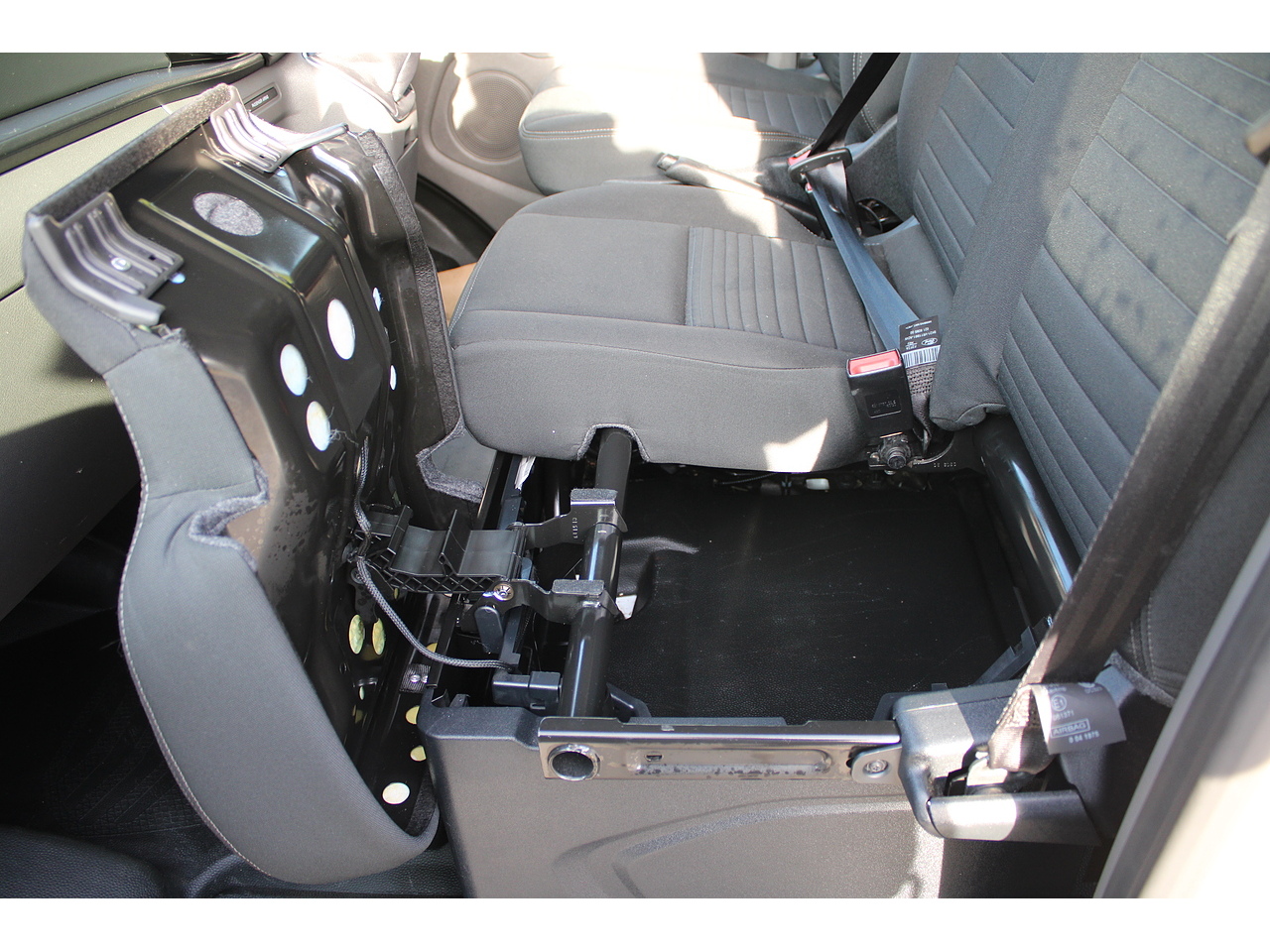 Dual front passenger seat with lift-up cushion and underseat storage,