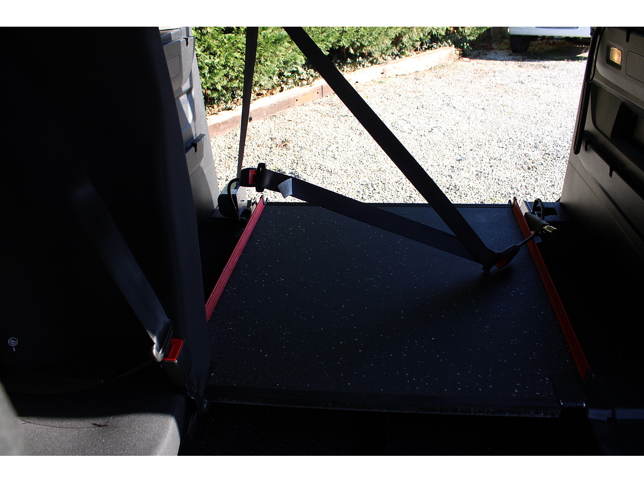 3 travel seats plus wheelchair or mobility scooter, with securring with lap and diagonal seat belt for the chair users saftey and comfort.
